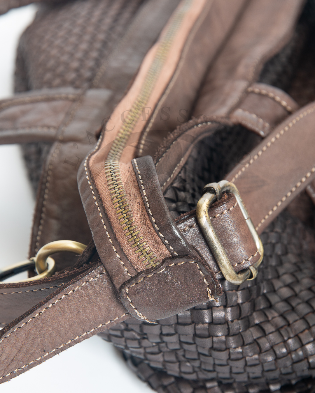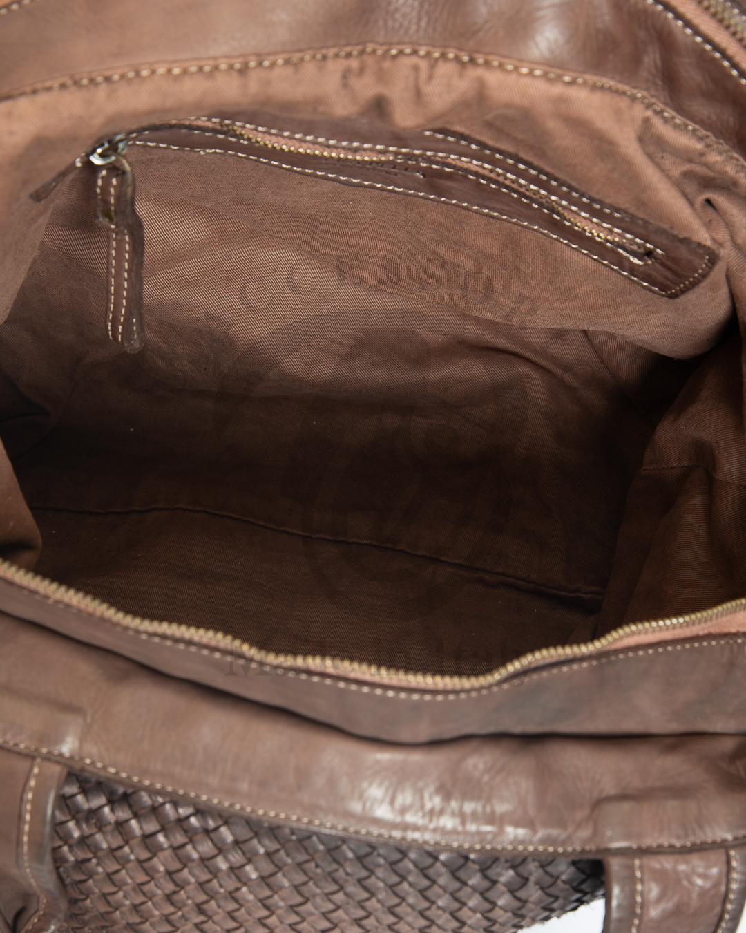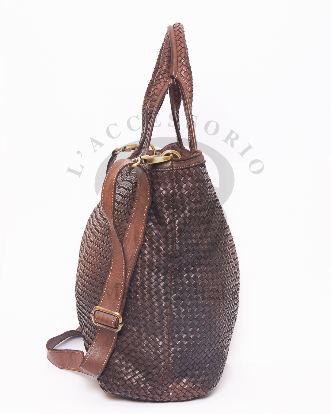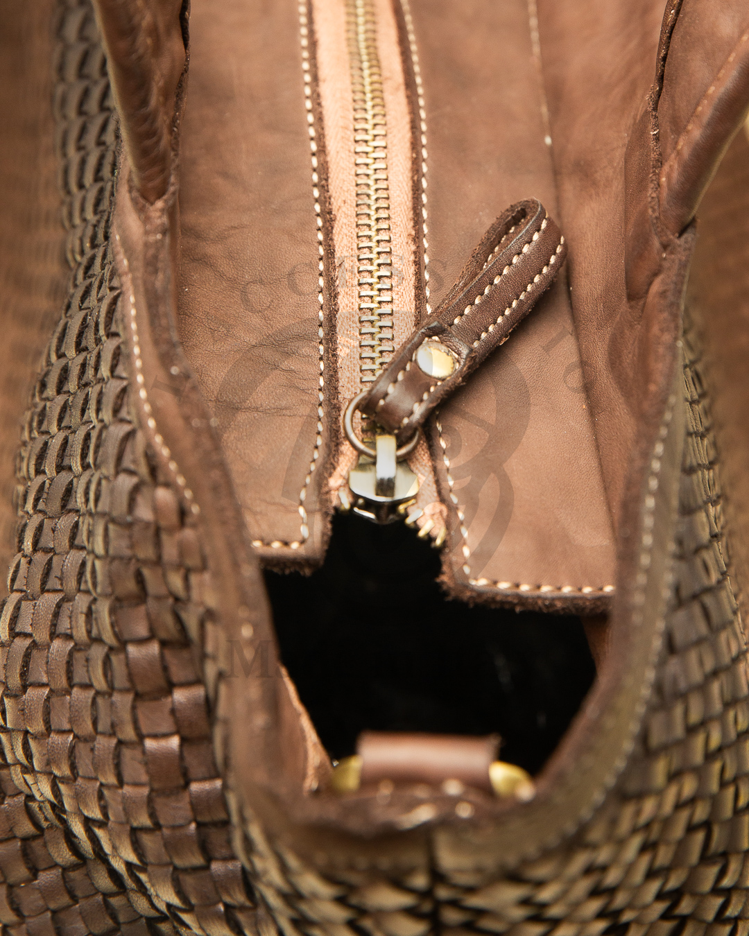 La “Dalì” è una borsa artigianale intrecciata a trama fitta. La pelle,aerografata ai bordi, ottiene l’effetto vintage con la tecnica del lavato in capo. Splendido modello shopping grande, da portare a mano oppure con tracolla regolabile e rimovibile. Modello gradevole per il design minimal, la sua comodità e capienza. Chiusura principale a zip. Interno in cotone, spazioso con tre tasche di cui una con chiusura a zip Misure: L 42 cm H 32 cm 50 cm (con manici) P 13 cm
